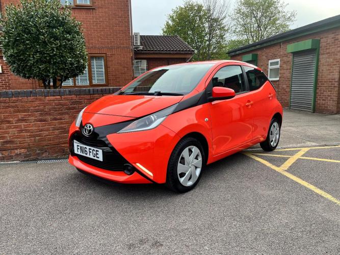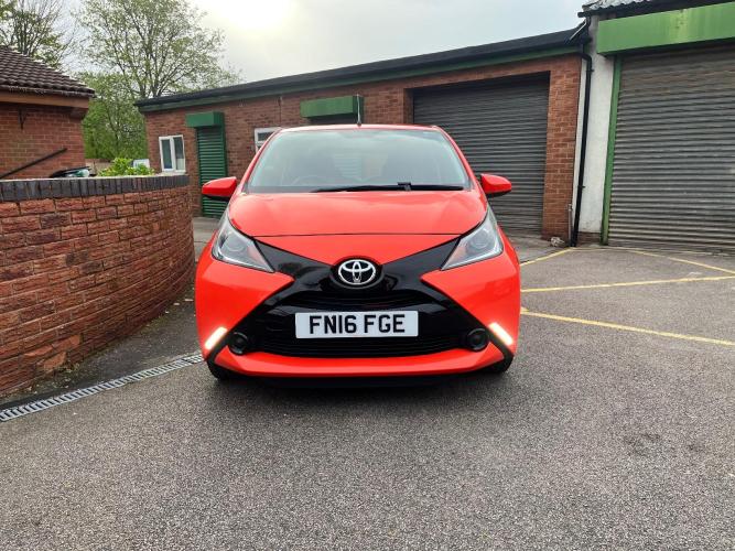 Two owners from new, Excellent condition, Genuine mileage 25,789 miles 2016 registered on 16 plate TOYOTA AYGO X-PLAY VVT-I 1.0 litre Petrol with Manual Transmission. This 5 Door Hatchback is finished in Orange Metallic paintwork and has many features included as standard for example, power assisted steering, air conditioning, RDS stereo radio, trip computer, cruise control, ABS anti-lock brakes, remote central locking, electric front windows, adjustable steering column, driver and passenger airbags, anti-theft alarm system, Economical to run, New 12 months MOT included on sale, HPi checked, sold with three months mechanical breakdown Warranty comes with all documentation, original Handbooks and two sets of keys. Part exchange considered Credit/Debit cards accepted Finance arranged subject to status.... Please contact Lisa Ross for further information or to arrange viewing or test drive.
